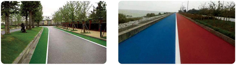 主要適用于綠道、自行車道、步行道、景觀園林道路等各類慢性系統及景觀道路鋪裝,特殊牌號產品也可應用于行車道、公交車專用道、路口、高速公路服務區等重載交通路面。