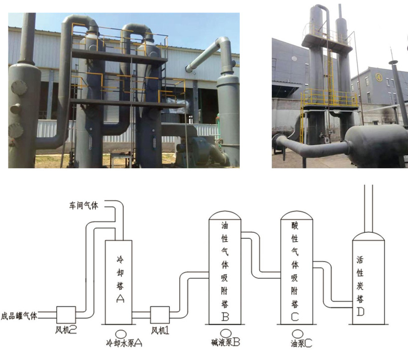 各種瀝青基防水材料的生產(chǎn)過程中,需對瀝青進行加熱、輸送并制成滿足各種工藝要求的瀝青類混合料供生產(chǎn)使用。在此工藝過程中,會產(chǎn)生大量的瀝青煙氣。煙氣中含有多種有機物,包括碳環(huán)烴、環(huán)烴衍生物及其它化合物,有不少對人身健康有危害作用,瀝青煙含有苯并芘、苯并蒽、咔唑等多種多環(huán)芳烴類物質(zhì)”, 且大多是致癌和強致癌物質(zhì),粒徑多在0.1~1 .0μm之間小的僅0. 01μm,大的約為10. 0μm,尤其是以3 , 4-苯并芘為代表的多種致癌物質(zhì)。其危害人體健康的主要途徑是附著在8um以下的飄塵上,通過呼吸道被吸人體內(nèi)。因此,對瀝青煙氣進行凈化治理,使排放滿足大氣環(huán)境標(biāo)準,是非常必要的。